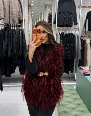 kılçıklı kürk yelek Bordo