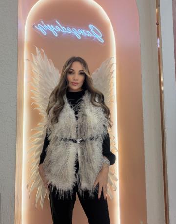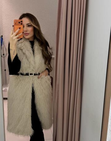 uzun kılçıklı kürk yelek Ekru
