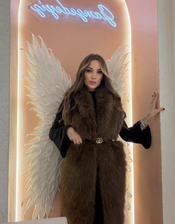 uzun kılçıklı kürk yelek Kahve