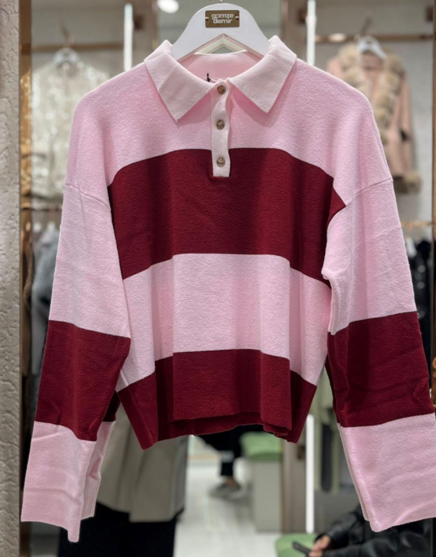çizgili polo yaka kazak | gamze-demir