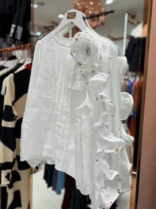 gülü taşlı gömlek Beyaz