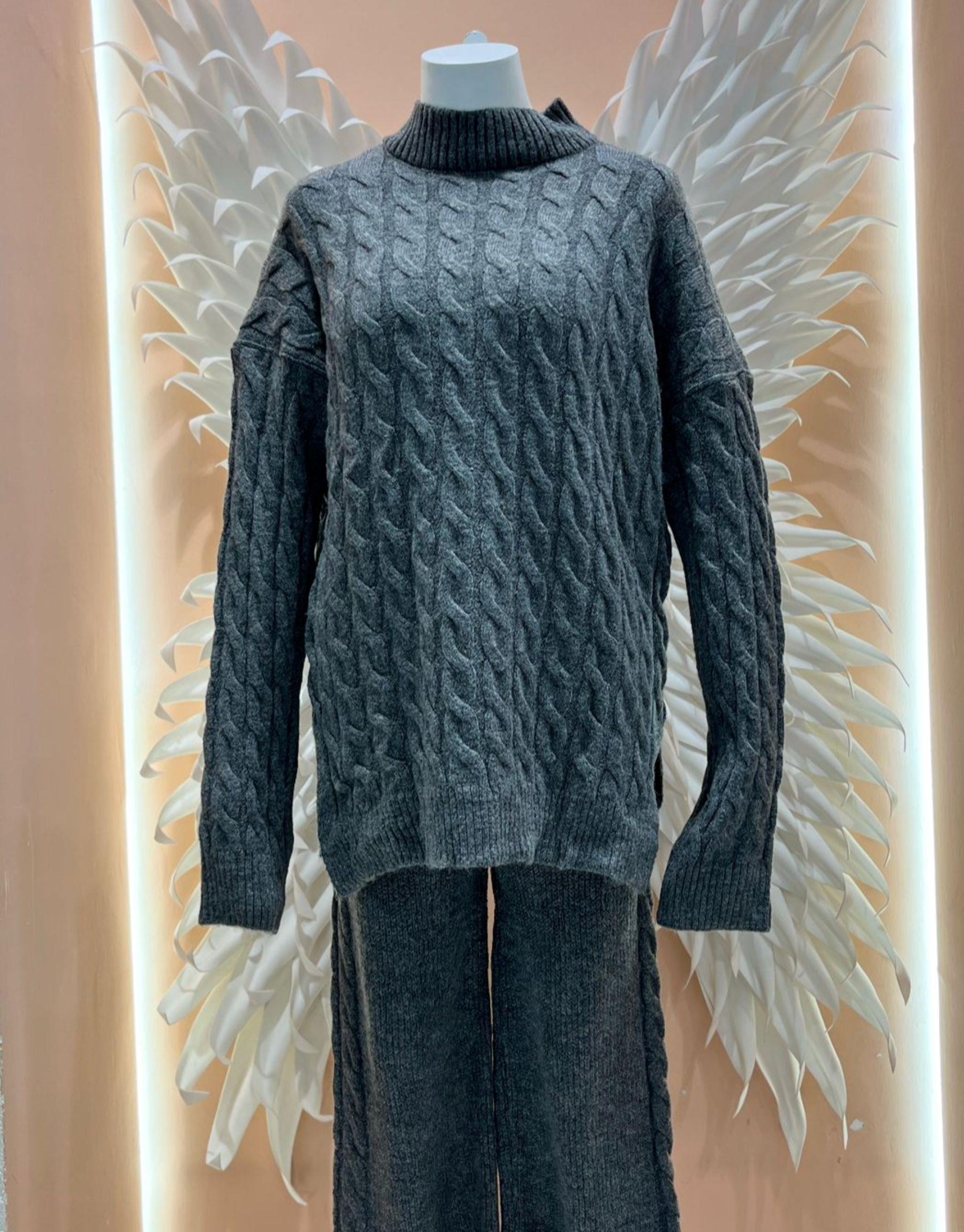 örme detay triko takım Antrasit