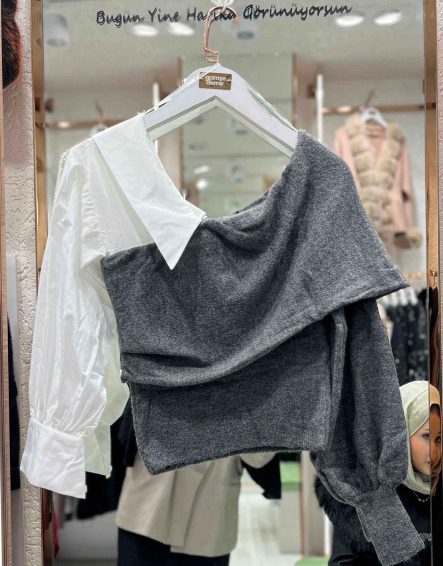 yaka detaylı triko kazak Antrasit