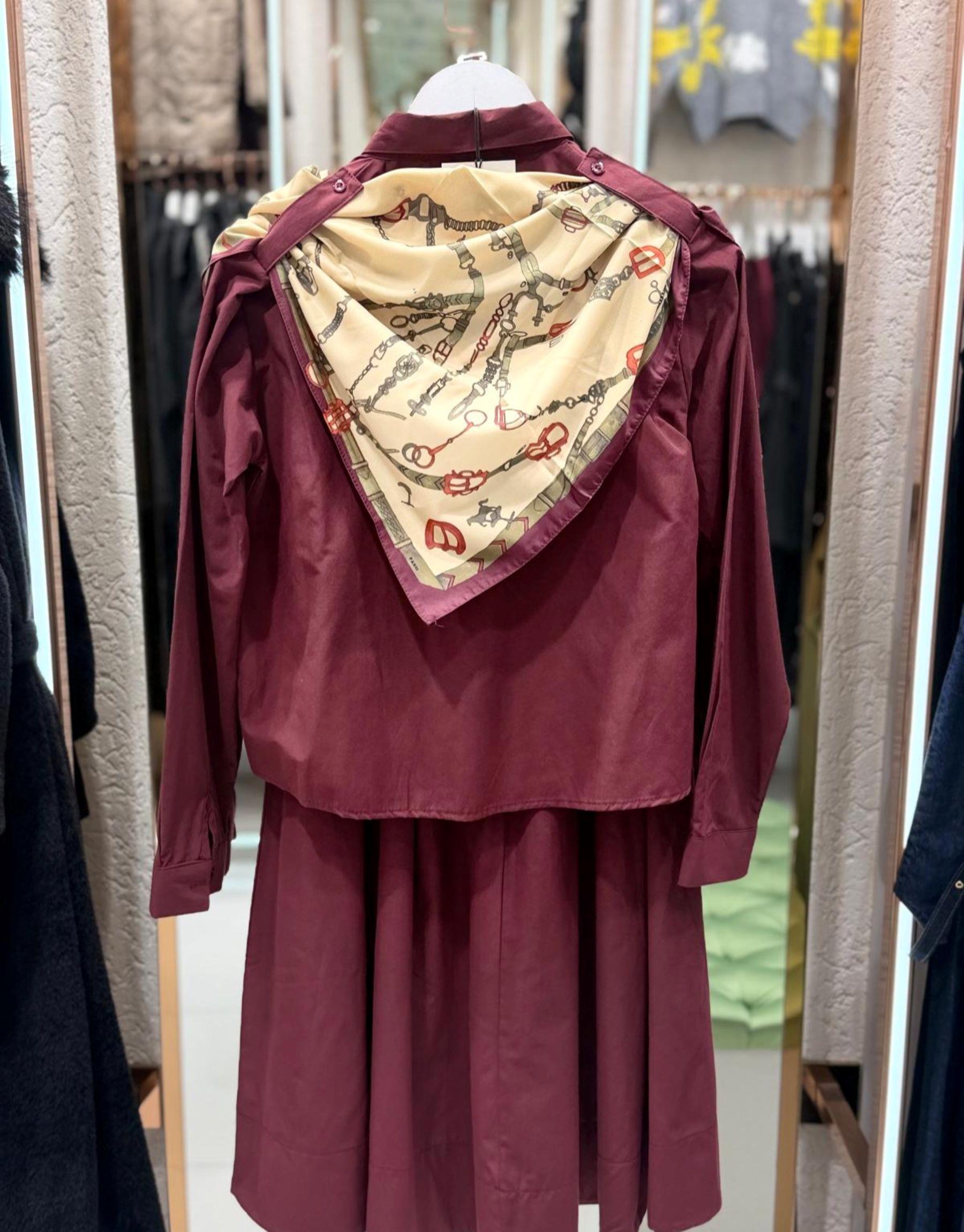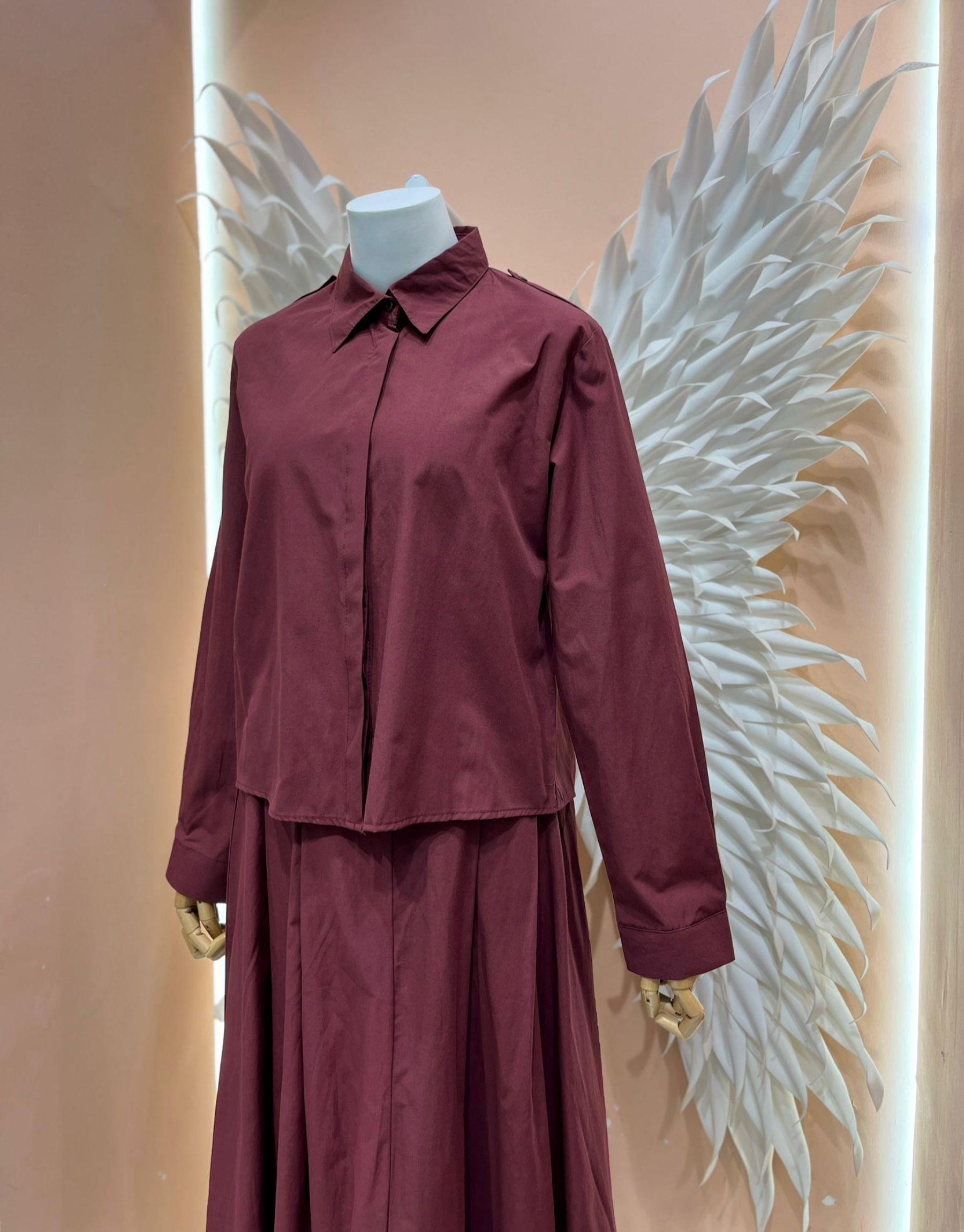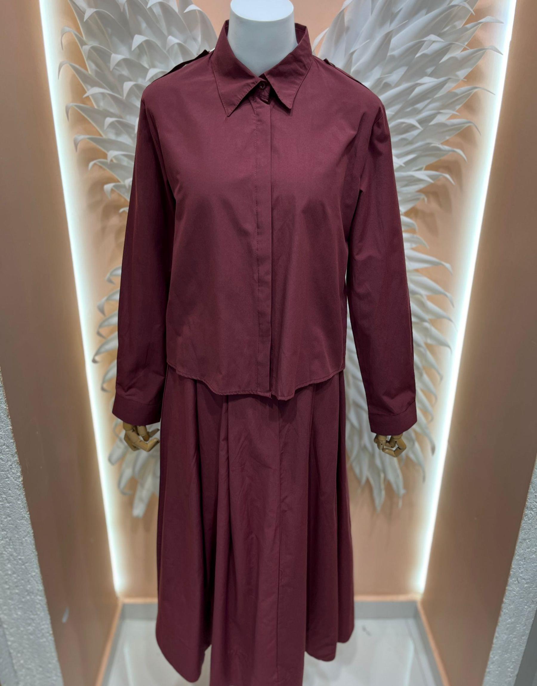 gömlek detay etek takım Bordo