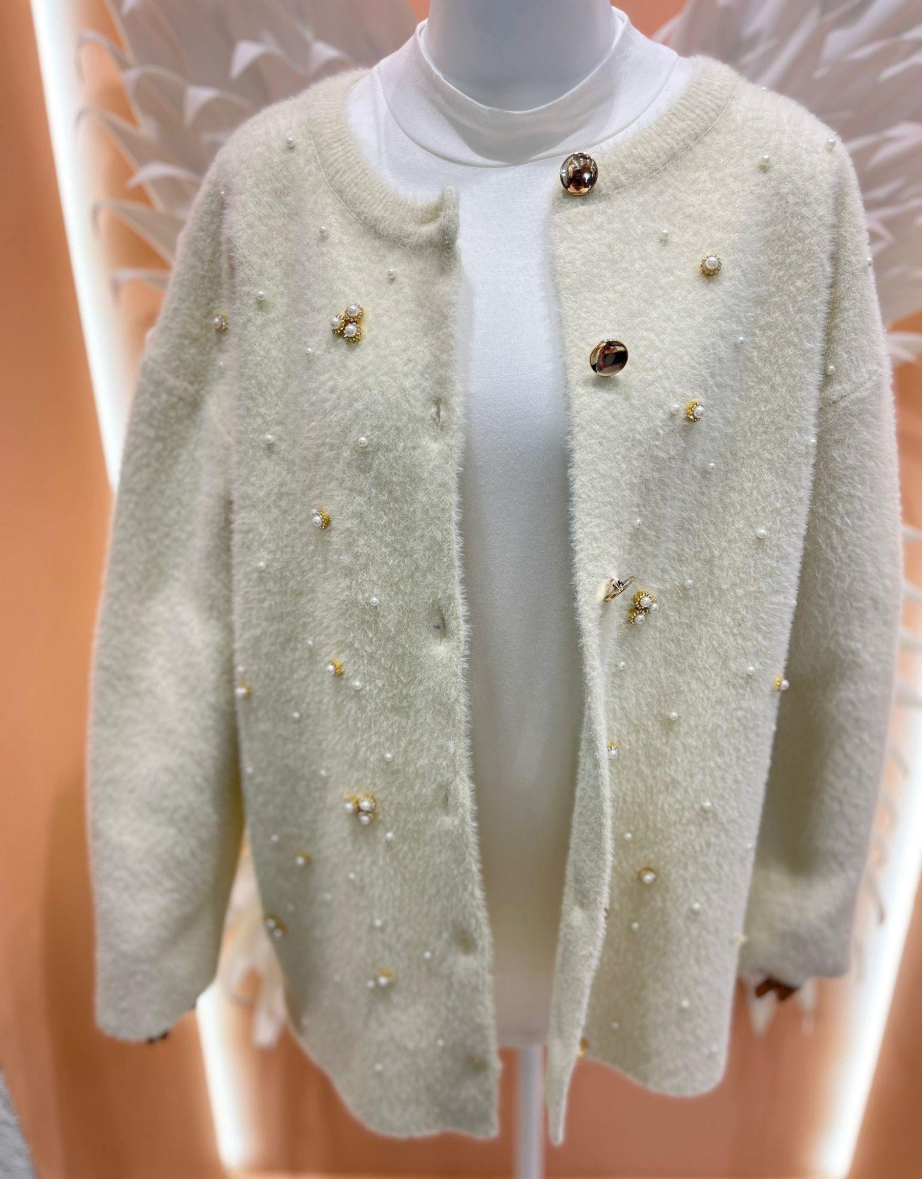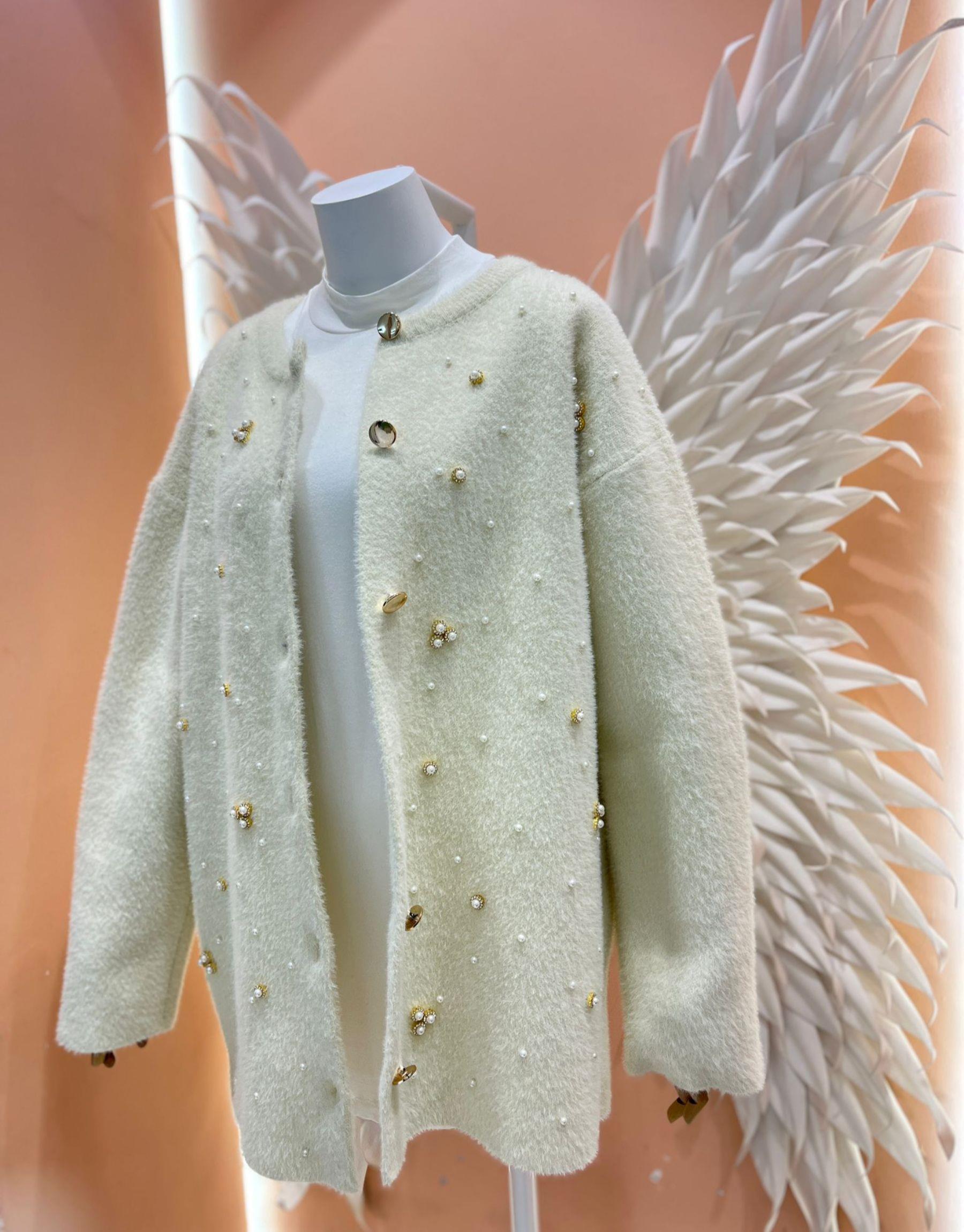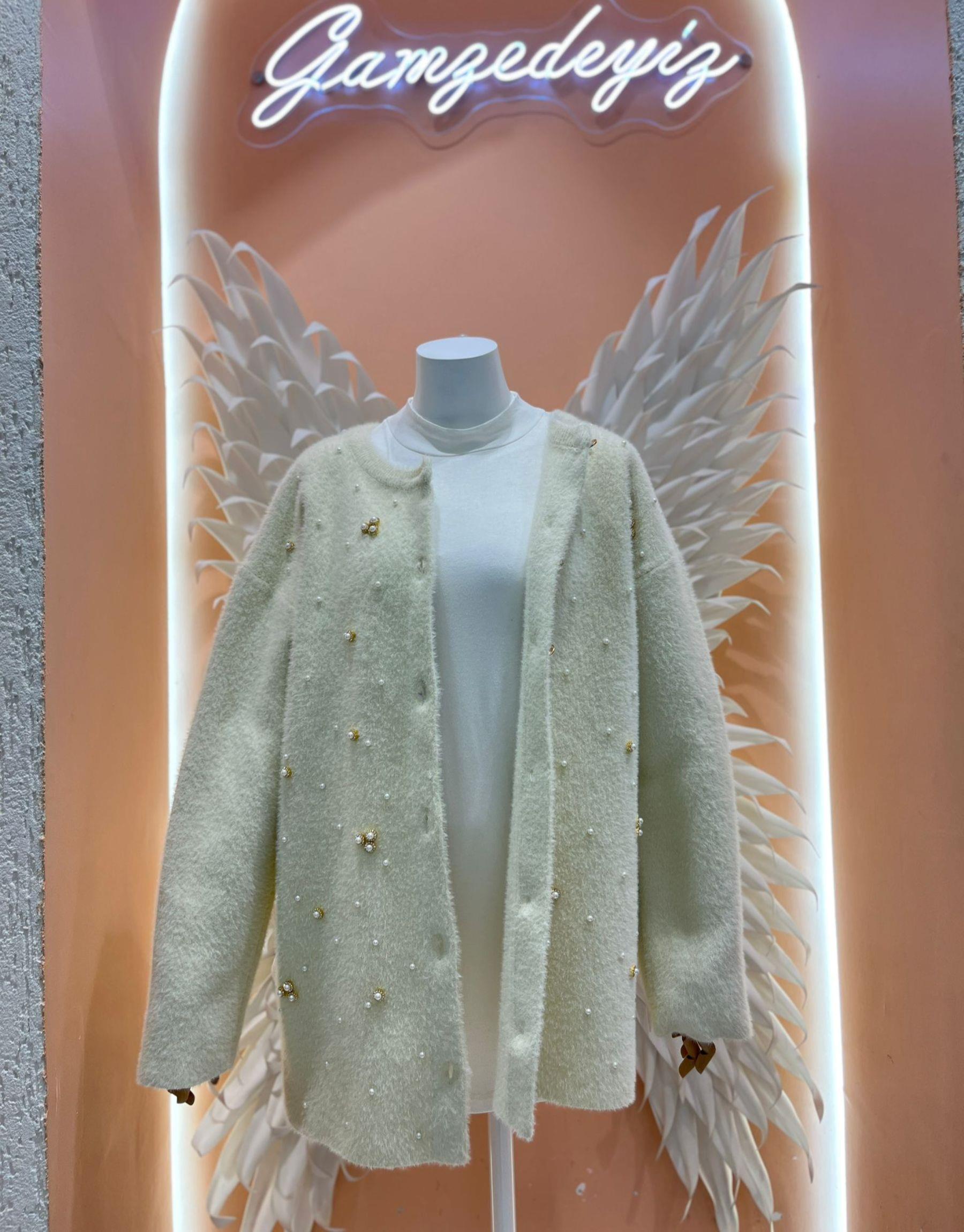 taşlı incili angora hırka Ekru