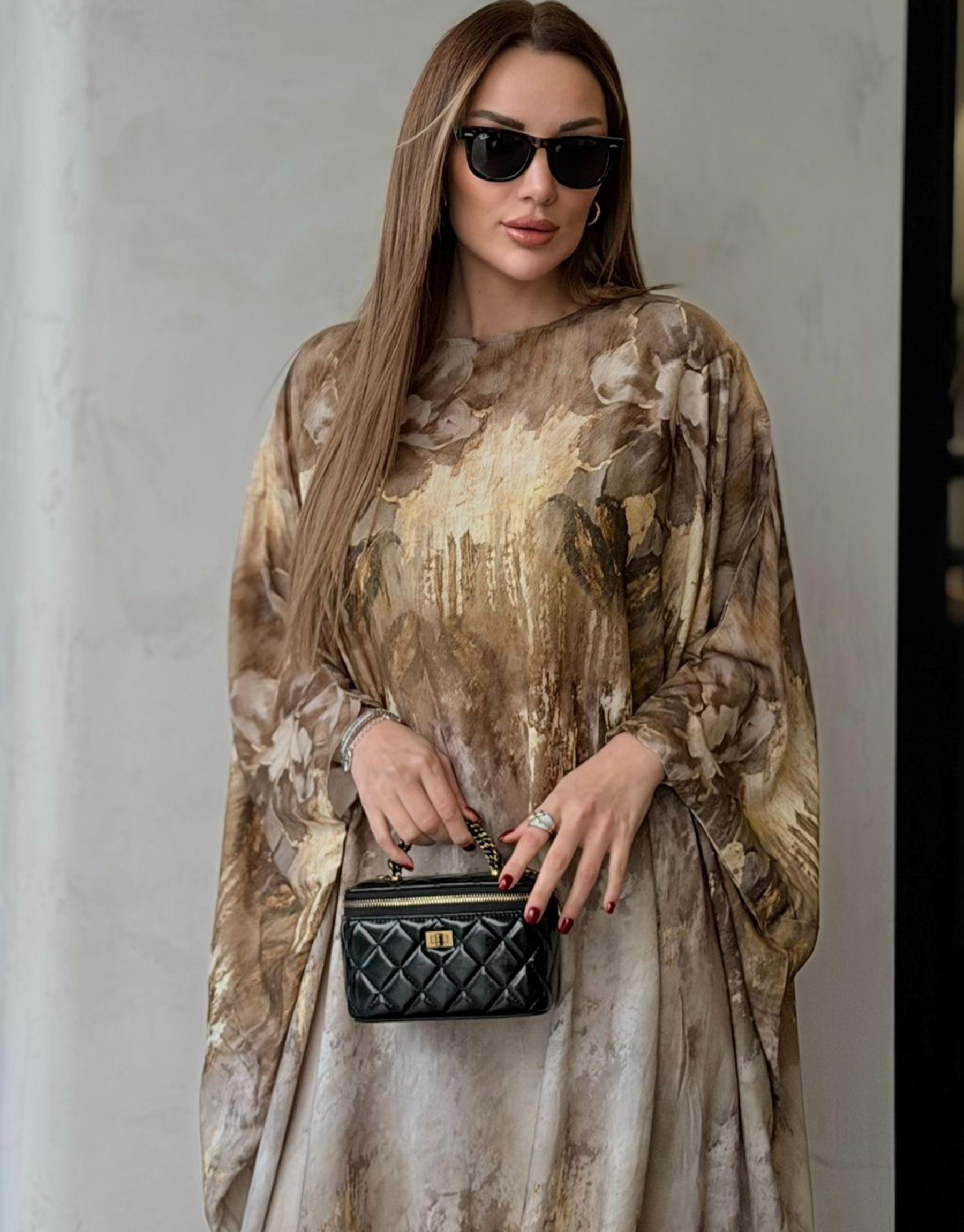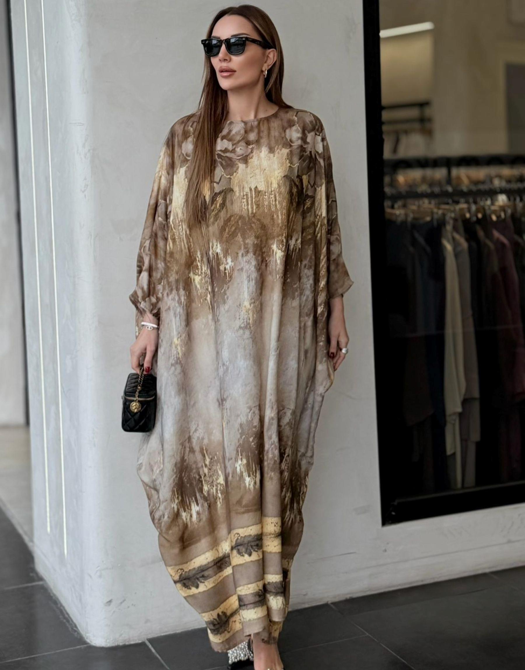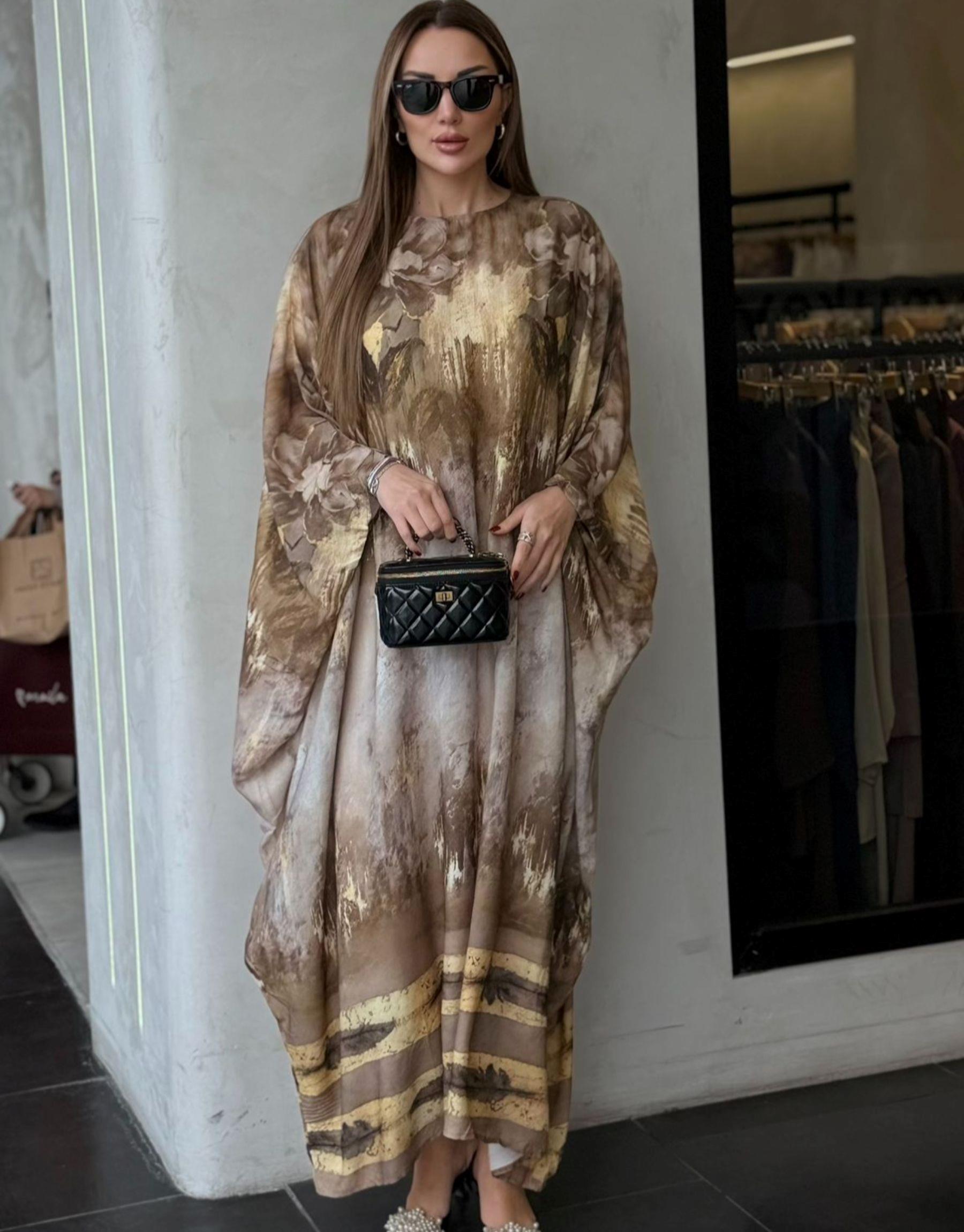 desenli elbise Siyah/Turuncu