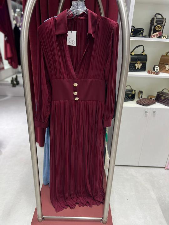bel detay şık elbise Bordo