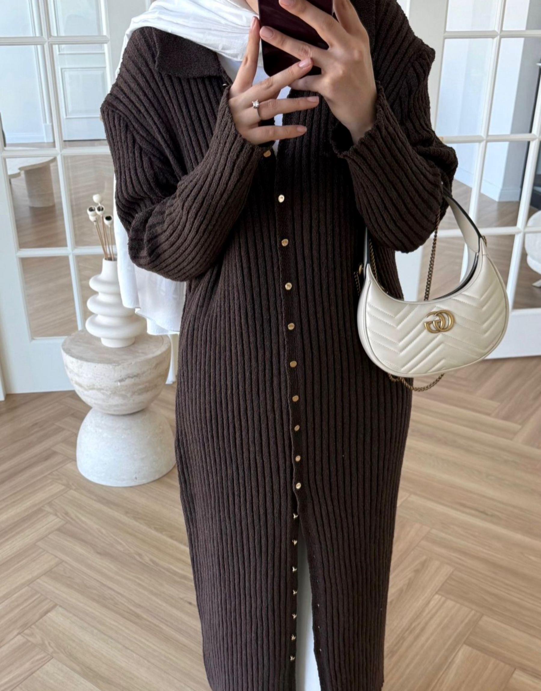 tam düğmeli triko hırka Kahve