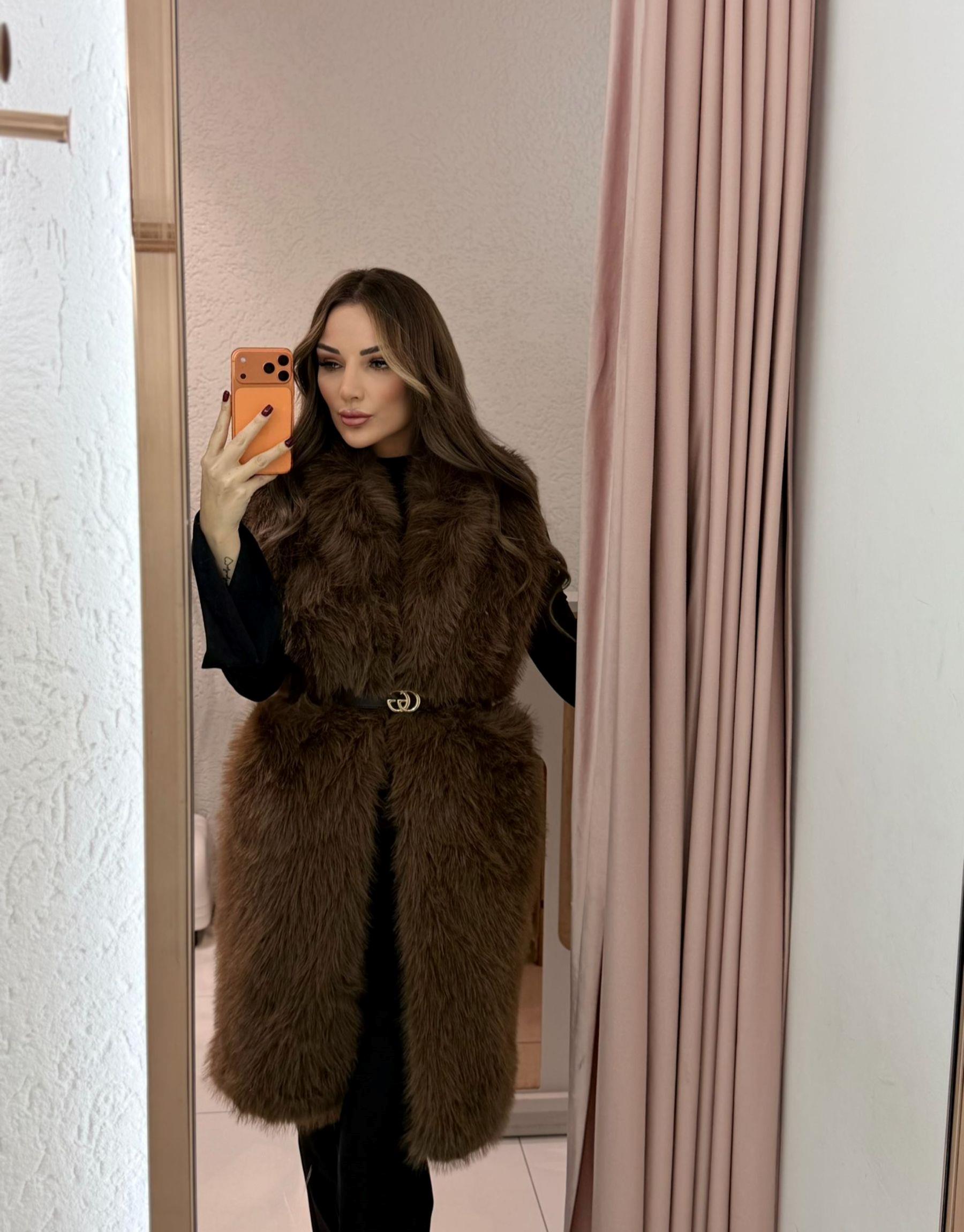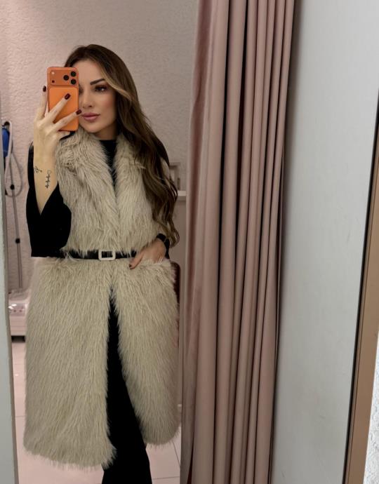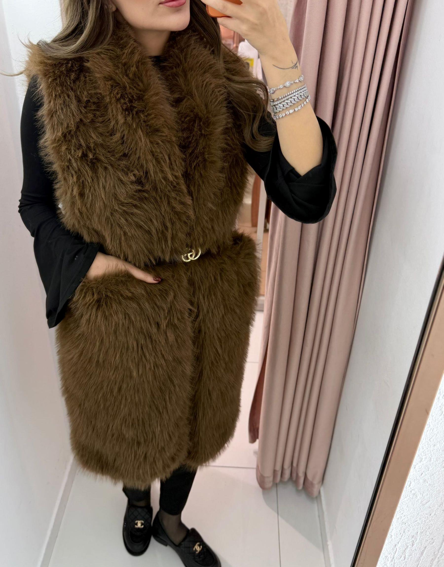 uzun kılçıklı kürk yelek | gamze-demir