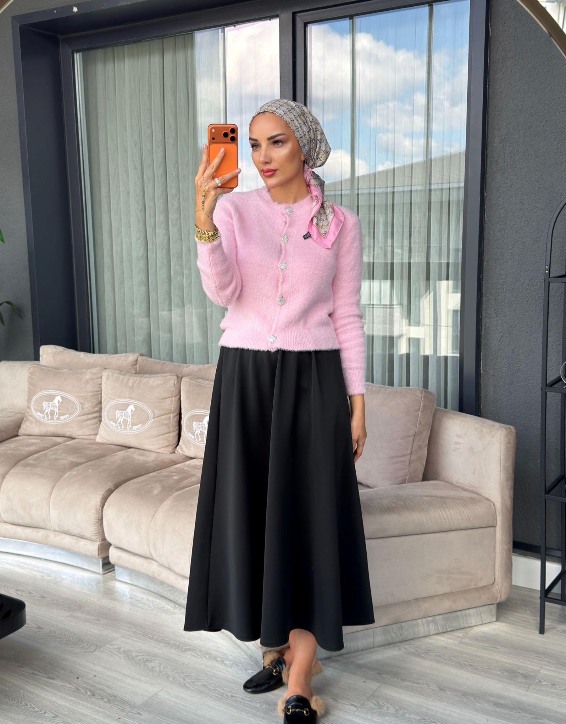 kalp düğmeli hırka Pembe