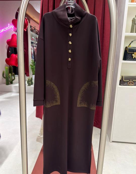 düğmeli elbise Acı Kahve