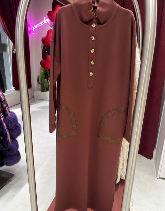düğmeli elbise Tarçın