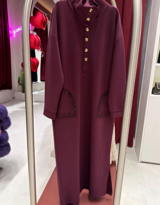 düğmeli elbise Mürdüm