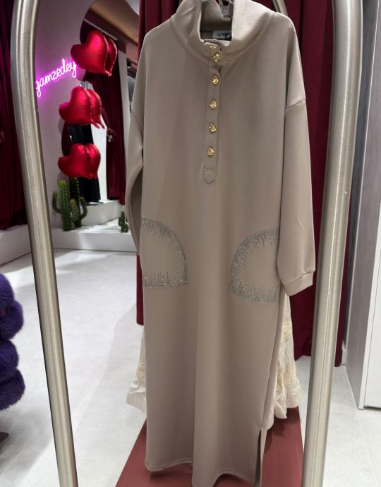 düğmeli elbise Vizon