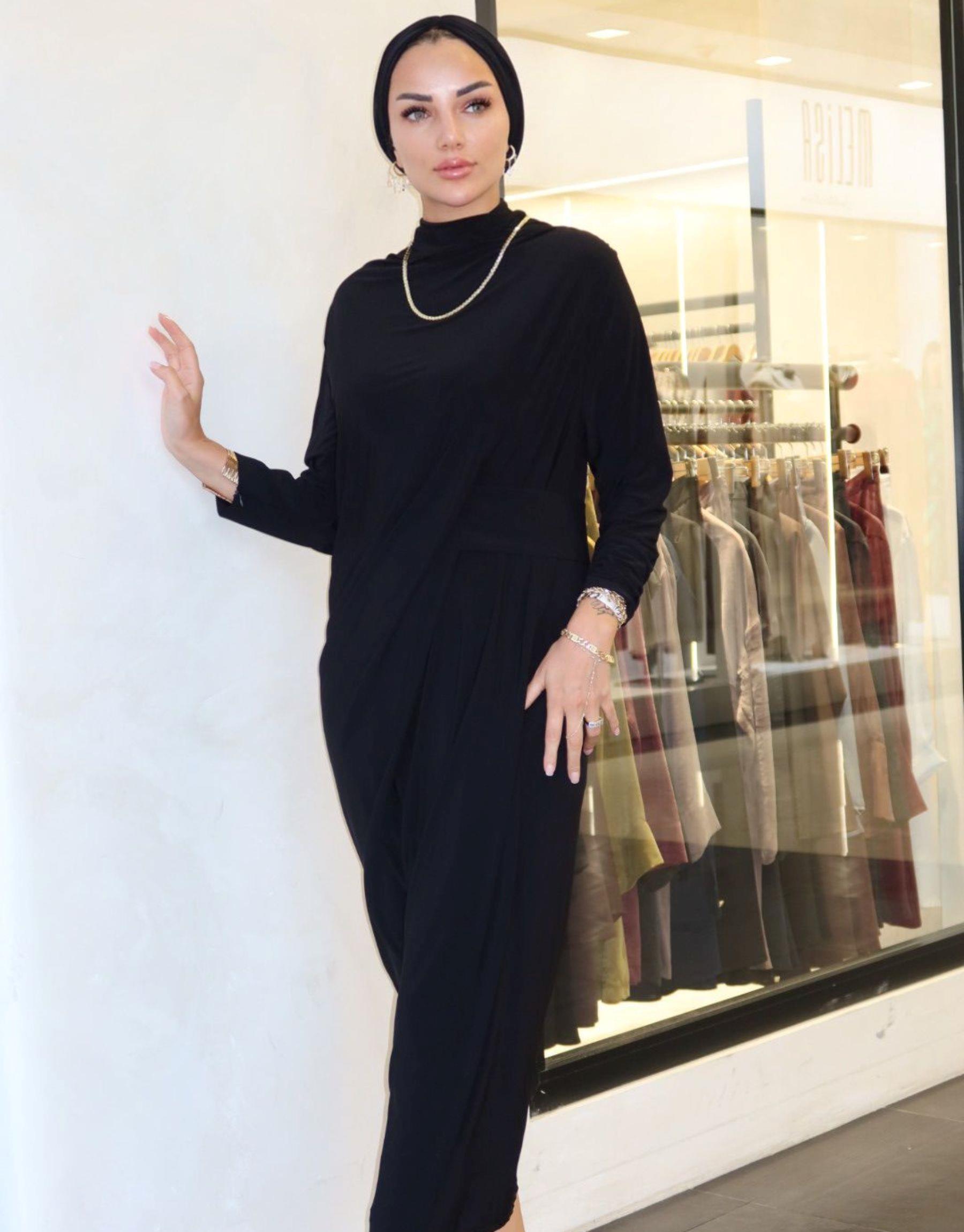pileli elbise Siyah